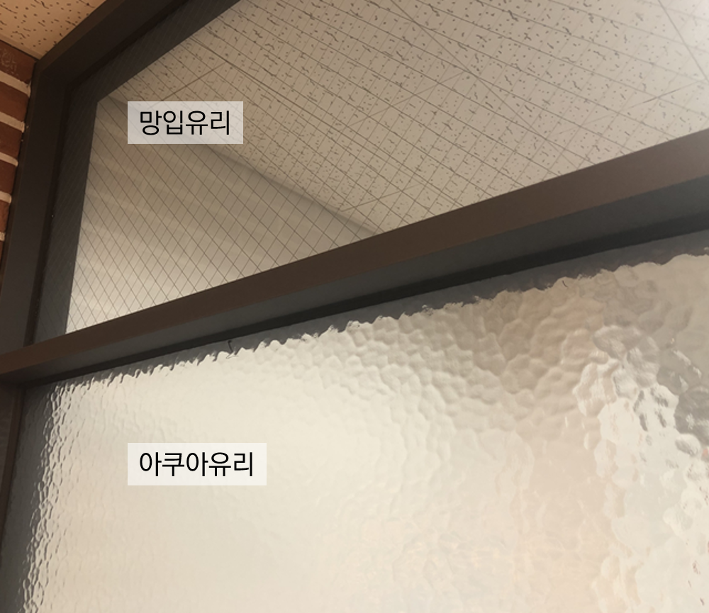 [사진 - 상단 망입유리, 하단 아쿠아유리]