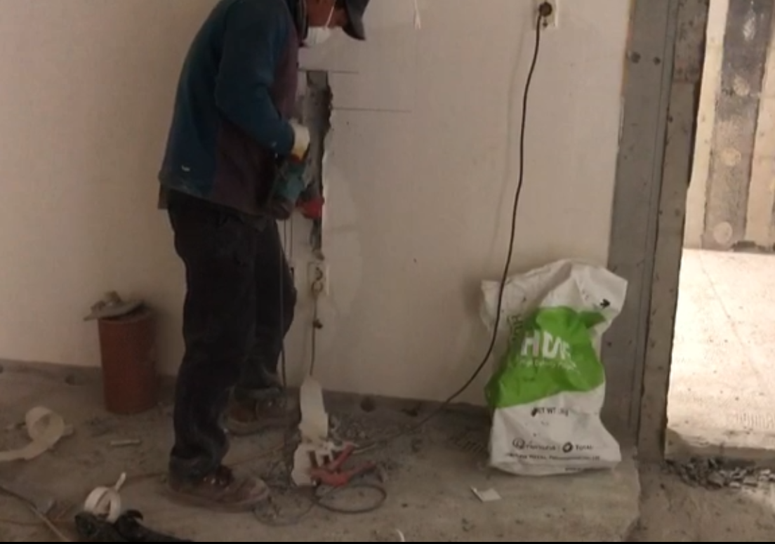 인테리어에서는 전기선같은 케이블(에어컨 배관도 포함)을 기존 있던 곳에서 원하는 곳에 이동 하기위해 벽이나 바닥의 콘크리트를 일부분 절개해내는것을 말함.